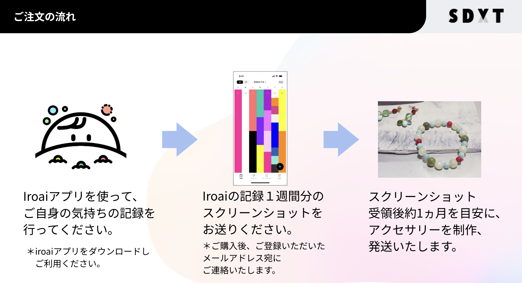 ご注文後、iroaiの記録の一部のスクリーンショットをお送りいただきます。